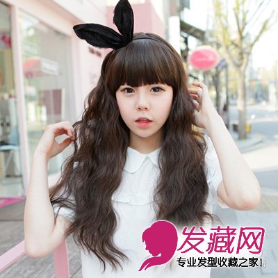 长发蛋卷头造型时尚靓丽,很适合爱美的少女们,配上兔耳朵的发箍甚是可爱。
