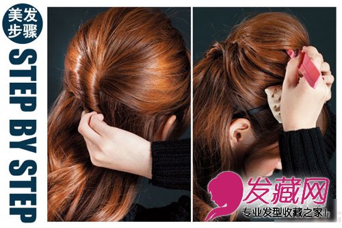 以细梳将顶部发丝向上挑,做出松松的顶部线条,然后在刘海和扎发的。