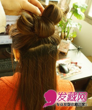 将马尾辫子往上再往皮筋处弄个孔拉出来