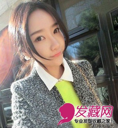 这款看上起非常的慵懒自然,中分的刘海很自然的垂落在脸颊旁边,随意扎起的马尾也很有感觉。