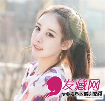马尾是众多女生喜欢常用的发型,长长的自然卷发扎起清爽的马尾发型,露出光洁的额头,精致的五官,清纯无限。