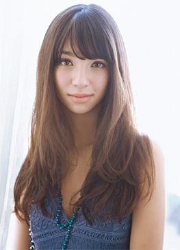 束感的修剪造型方式,加上日系MM最爱的驼色系明亮发色,让一头长发即使没有经过特殊烫发 ,都能带出飘逸、跳脱感;以厚重感强调强调前刘海 ,及眉长度和两侧内收的秀发让双目在面上的“占地面积”视觉上瞬即增加。日常打理时,记得以哑光造型产品强调秀发束感,不然会显得厚重沉闷哦。