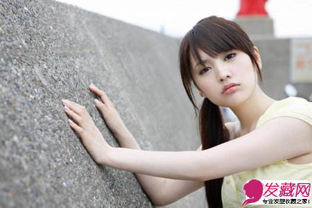 这款发型给人一种十足清纯学生范的感觉,简单的侧扎马尾不加任何修饰,柔顺的齐刘海自然分开,甜美可爱之极。