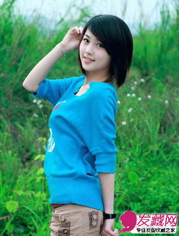 柔顺光泽的短发,率性又阳光,斜刘海修颜饰脸,精致的小脸在乌黑秀发的反衬下更为白皙动人,站在一片绿意盎然的田园里,让人赏心悦目。