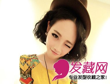 轻熟女人气质的中分短卷发,配上棕色的帽子更具潮流,简约大方。