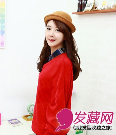 自然柔顺的斜刘海长卷发发型超美丽,戴上棕色的圆帽,一颦一笑都散发着干净纯美的气息。
