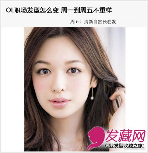 有没有觉得周五比周一还要忙碌?白天既要为一周的工作进行忙碌收尾工作,下班又要与男友约会。许多OL们不禁犯难,究竟应该如何打扮才能两全其美。小编在此建议头发造型不要太过复杂,在风格上最好稍显模糊一些,一款带有自然微卷效果的长卷发造型是个不错的选择。既展现出职场中应有的OL优雅风格,又带有一丝清新甜美气息,可谓是百搭不出错发型哦。