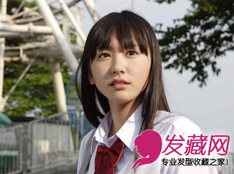 齐刘海的长直发发型,号称最为清纯的女学生发型。搭配简单的校服,是很好的选择呢。