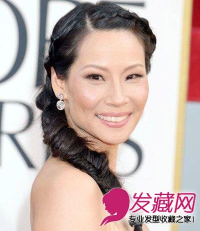 刘玉玲是欧美化的亚洲美女,编辫子非常适合亚洲人,所以不妨就从头顶的刘海一直编到发尾吧,这种类似新娘头的辫子能有很好的固定作用。