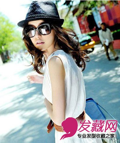 充满空气感的卷发,将所有的秀发随意拨在两边,搭配超酷的黑色墨镜,瞬间释放出你的时尚品味!如果能搭配这种黑色的小礼帽,绝对让你的魅力指数爆棚!哪怕只是一款白色的连衣裙也能秒杀众人。