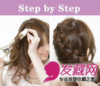 先用卷发棒将头发的卷烫加强,卷曲打造到头发中上部分。