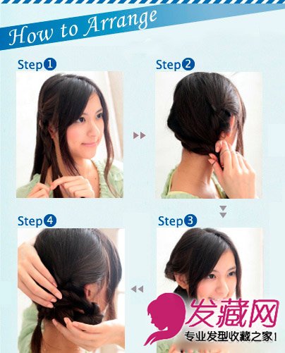 step4:编好的辫子重叠成发髻状,用橡皮筋固定后再夹上发夹,第二款发型又搞定了。