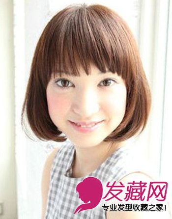 发型点评:这款短发类似波波头的造型,厚重内扣的发尾很好地修饰了方脸的轮廓,让脸部显得柔和。碎刘海盖住整个额头,起到很好的修饰作用。