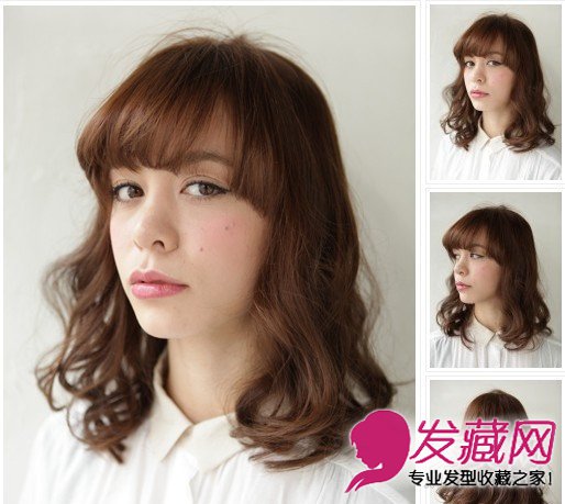 将刘海位置烫出内卷的造型,塑造出立体感的修颜效果,搭配上波浪的蓬蓬卷度更显潮流元素。