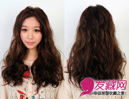 咖啡色蛋卷头烫发,华丽饱满的设计顿时告别发量少的烦恼,丰满的发丝让头型也更显圆润。