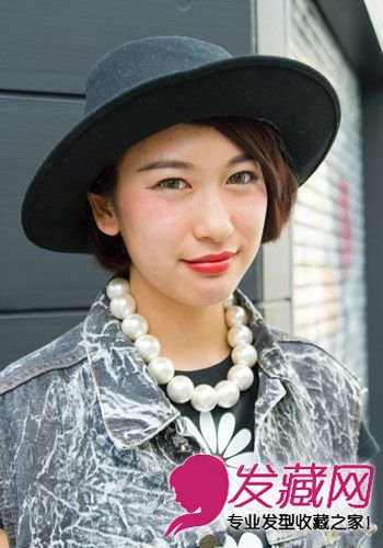 牛仔装加上亚麻色的偏分短发,干练发型再加上黑色礼帽,帅气有余而缺少些许女人味,一只橘红色的唇膏可以拯救你,贴合肌肤又不甜腻。