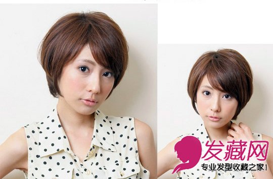 小编点评:斜刘海短发发型优雅自然,上松下紧的短发设计清凉自然。