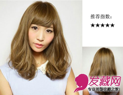 凌乱的烫发蓬松显大衬托出小脸,斜刘海缩短脸型长比例,更加的瘦脸,渐变的棕色提升时尚感。
