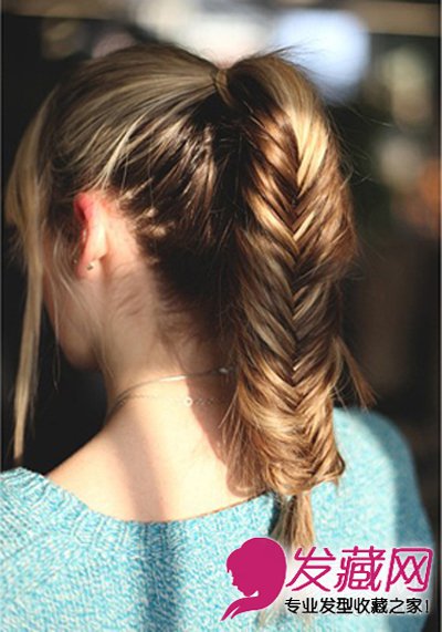 马尾又加上鱼骨辨,休闲但又优雅,把马尾绑高高的是不是很普通?若再点缀上鱼骨辨能让人眼睛为之一亮。