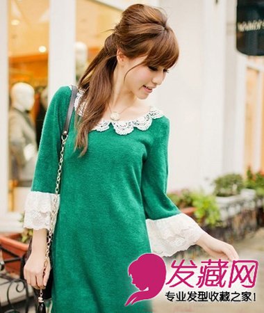 蓬松的韩系公主头扎发造型,棕色系染发的长发扎蓬松的公主头,显高显瘦,搭配平齐刘海,修饰出精致的小颜脸。