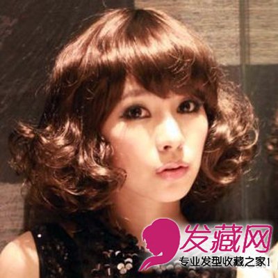这款女生短发波波头发型,蓬松的卷发发丝不仅很好的修饰脸型的缺陷,还十分有修颜效果。时尚栗色发色衬托出女生白皙的肤色。