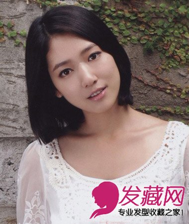 女生短发发型,设计出发尾微内弯的弧度,偏分发型,修脸必备款女生发型,很有OL风范儿的一款短发发型。