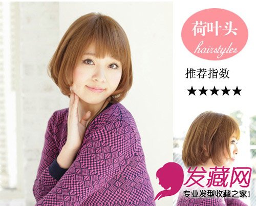 简单百搭的荷叶头搭配深亚麻色染发提亮肤色。