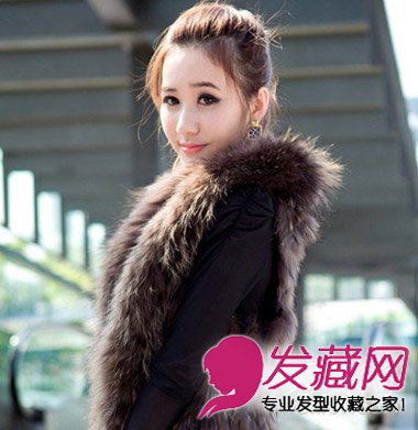 干净利落的盘发发型,适合轻熟女的一款知性盘发,刘海梳起带到发顶,两鬓碎发修颜甜美,搭配皮毛外套,暖意十足的御姐气质。