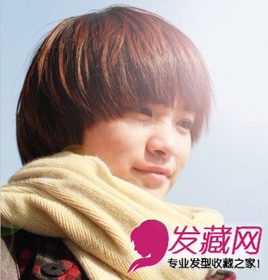 短发控MM冬季必备的蘑菇头短发,稍长的内扣发丝包住耳朵温馨保暖,红棕色的染发显白嫩的同时也很有温暖气息。
