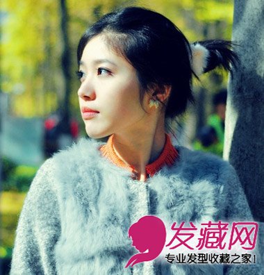 简单大方的露额长发扎发,乌黑发丝在脑后随意扎一个发髻清新甜美,搭配水蓝色毛衣外套,清甜可人。
