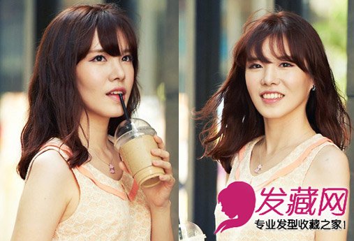 小编点评:这一款韩式长卷发仍然选择了空气感的碎发刘海,咖啡色卷发选择了细腻的玉米烫,让偏少的发量在视觉上立显丰满质感。