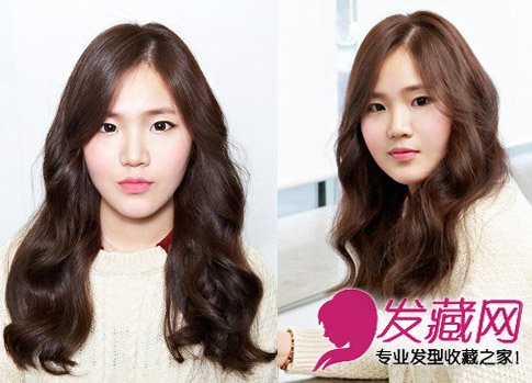 小编点评:饱满的长卷发制造出蓬松的丰盈感,侧分长刘海遮掩住略宽的额角,清新又修颜。