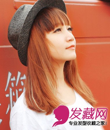 亮眼的日系中长直发发型,搭配橘色系挑染发更加显得肤白水嫩,披肩的直发发型飘逸清新,搭配帽子,个性十足的日式发型。