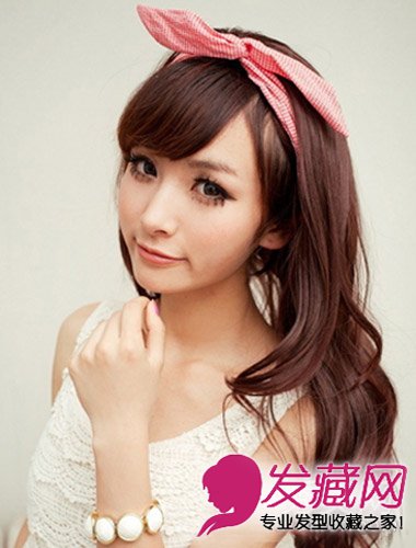 长脸的mm注意了,想要缩短脸型厚厚的刘海是必须的,卷发的波浪感可以很好的冲淡脸型瘦长感,配上比较大的发饰效果会更好哦。