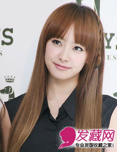 隐藏在整体发型中的麻花辫使其不再单调,垂感超强的直发看起来很有质感,齐刘海自然的分向两边,很有御姐的迷人气质。