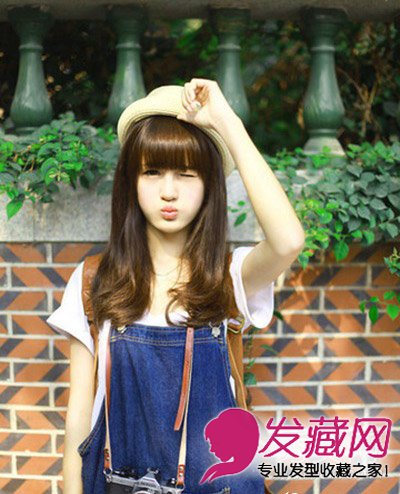 栗色发色看起来时尚而动感,卷烫后的发丝看起来不再那么单调,配合一顶小草帽,清新自然,学院风十足。