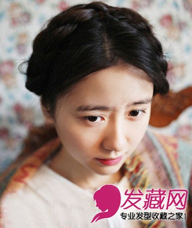 乌黑的长发打理这款辫子盘发很有复古气息,中分盘发露出额头清爽自然,甜美的初夏长发扎法。