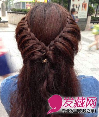 妹纸们的约会必学发型,加股辫编发式的公主头发型,繁复的编发造型也是很适合发量多MM的一款编发,很有淑女气息哦!