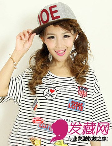 双马尾发型,卷卷的长发搭在两颊,灵动可人,刘海编发也是很好的解决刘海炎热感,一顶棒球帽搭出帅气感。