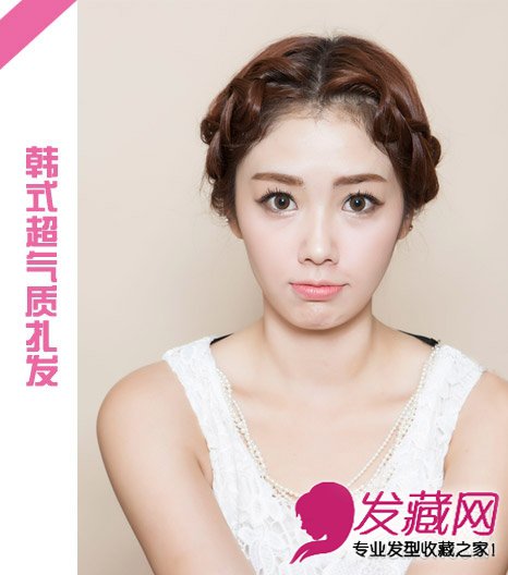 发型点评:这也是一款超显气质的花环露额盘发,额头部分加入扭转式的编发设计后头型显得更好看。