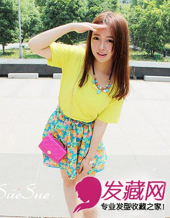 同样是一款时尚感十足的中分直发发型,这种中长的直发因染上了时尚温暖的栗色发色,再配合中分长刘海的设计与上一款乌黑的中长发相比多了一丝女生的活泼可爱感哦。