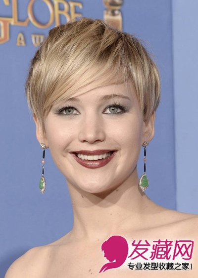 有人说如果一个女生剪了短发还是很迷人,那就真的是个合格的气质美女了。奥斯卡第一位90后影后詹妮弗·劳伦斯就是例子,劳伦斯(Jennifer Lawrence)这款斜刘海短发为她创造了妩媚干练的气质。