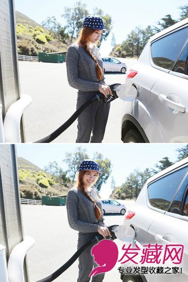 甜美的斑点鸭舌帽,很活泼可爱的一款帽子,搭配侧边编发发型更是可爱,长发麻花辫发型很是随性自然,甜美的编发搭配棕色系的染发颜色抢眼又时尚,很显活力的一款造型。