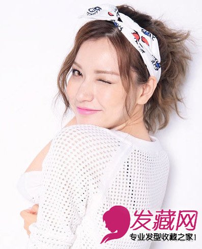 发型点评:高耸的马尾稍显凌乱,凸显出少女的张扬活力。头巾绑成蝴蝶结造型,固定刘海之余也能彰显出摩登气质。