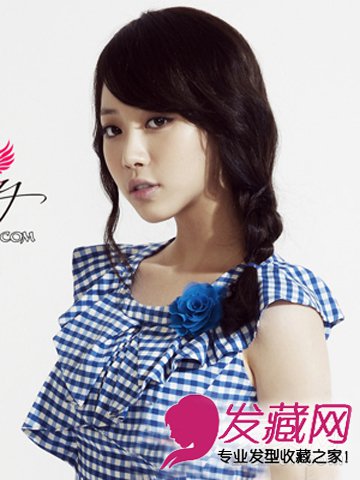 很有小清新气质的一款韩式编发,简单的中长发乌黑莹亮,侧边编发慵懒随性,很有甜美气质。