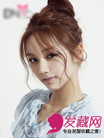 矮个子女生的显高法宝,甜美的丸子头扎发,简单的高发髻扎发清爽,中分长刘海自然垂落脸颊,修颜瘦脸。