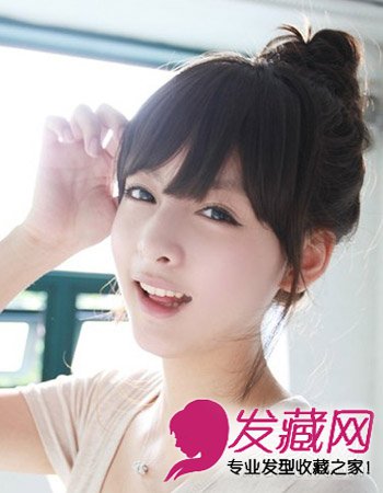 清新爽朗的丸子头当然也不可多得的一款 ,碎发刘海勾勒出一种别致的清爽感,蓬松的可爱的小丸子头显露出别具一格的气质感,两鬓的发丝可以起到很好的修颜感