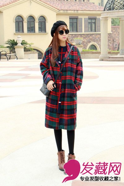 棕色的长卷发搭配红色的格子外套最是合适不过了,韩式的棕色的染发很显时尚范,帽子和墨镜的搭配更是时尚达人的最爱,披肩的长卷发很显修长身形。
