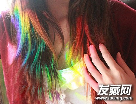 彩虹系染发也是马卡龙的一种特色,一侧是简单的红色,另一侧多种色调挑染, 打造出潮感十足的发型。