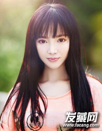 再是一款女神范十足的女生长直发发型,这种同样清新没有烫发与染发处理的长直发最显女生的清纯感了,而配合的清新的空气感刘海与飘逸的长直发相搭更显女生的可爱甜美风,而且还有修颜效果哦。